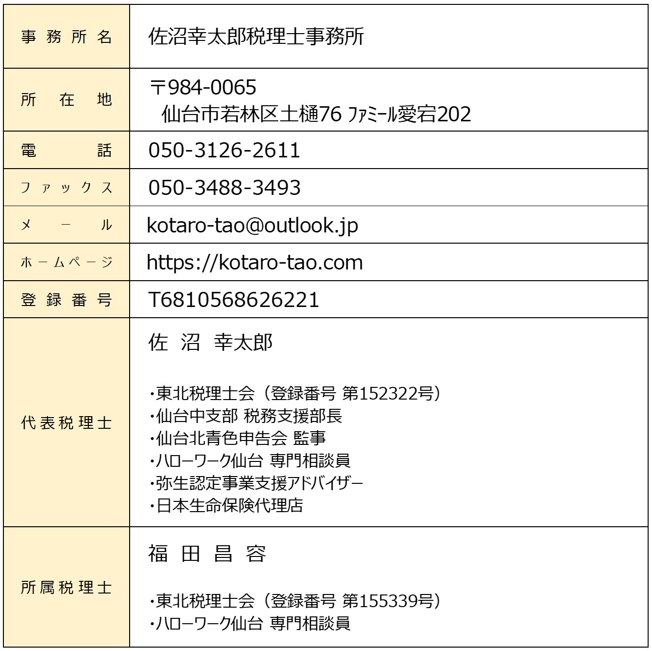 | 事務所名 | 佐沼幸太郎税理士事務所 |