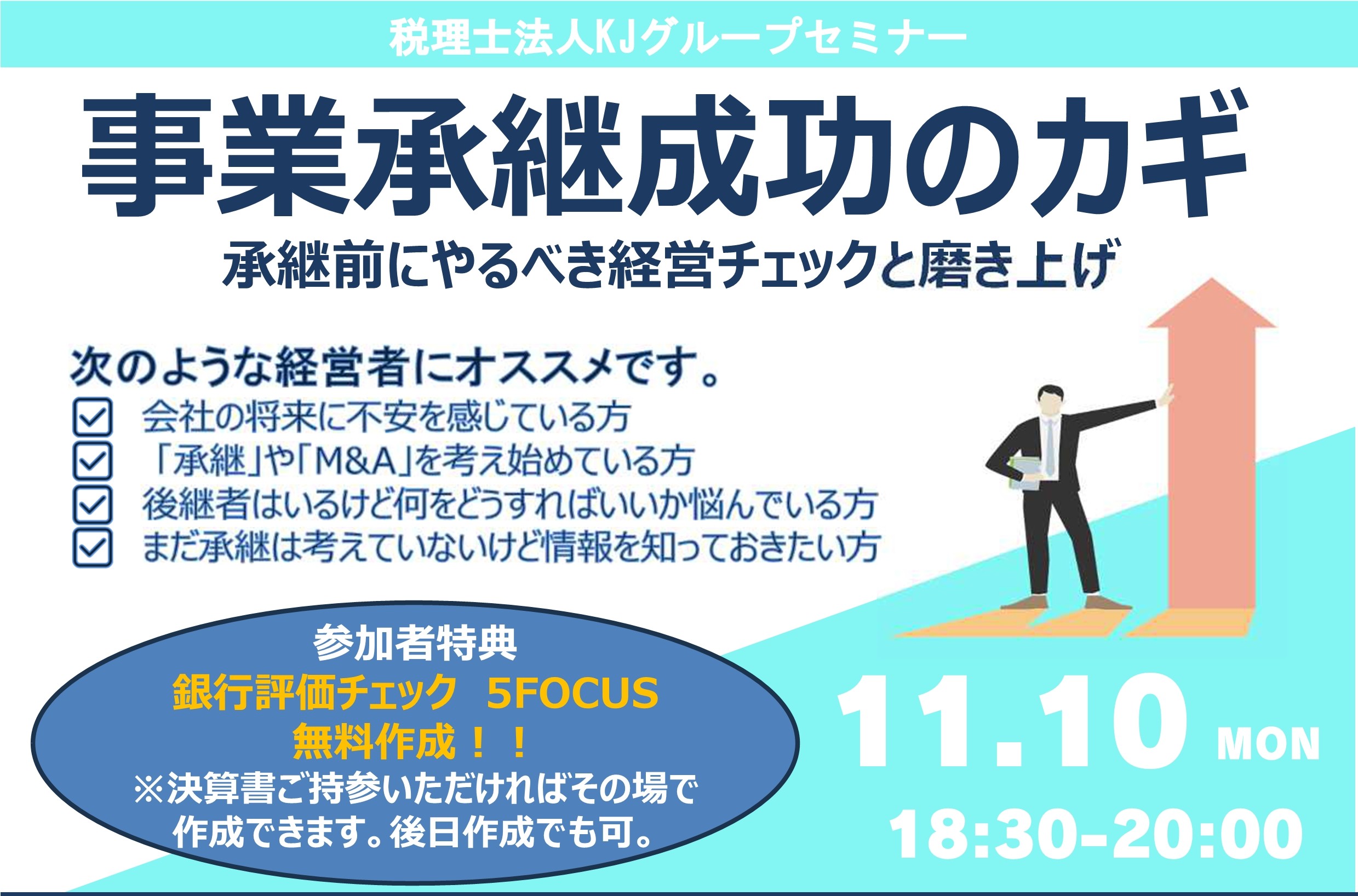 事業承継・M&A・相続【無料 会場 ZOOM 同時開催】 事業承継成功のカギ ~承継前にやるべき経営チェックと磨き上げ~