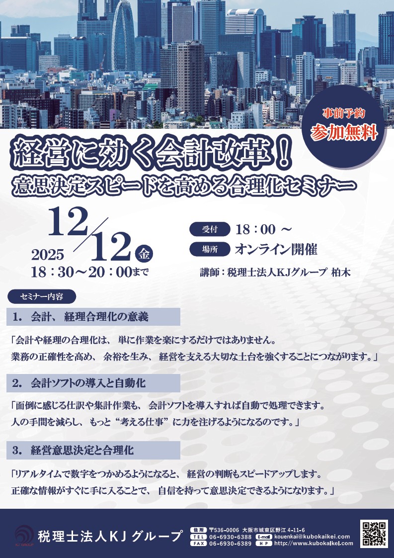 税務・会計・経理経営に効く会計改革! 意思決定スピードを高める合理化セミナー