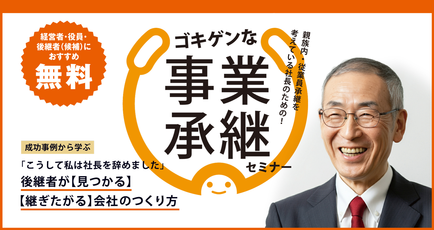 NEW事業承継・M&A・相続【11月18日(火)大阪開催】親族内・従業員承継を考えている社長のためのゴキゲンな事業承継セミナー ~後継者が【見つかる会社】【継ぎたがる会社】のつくり方~